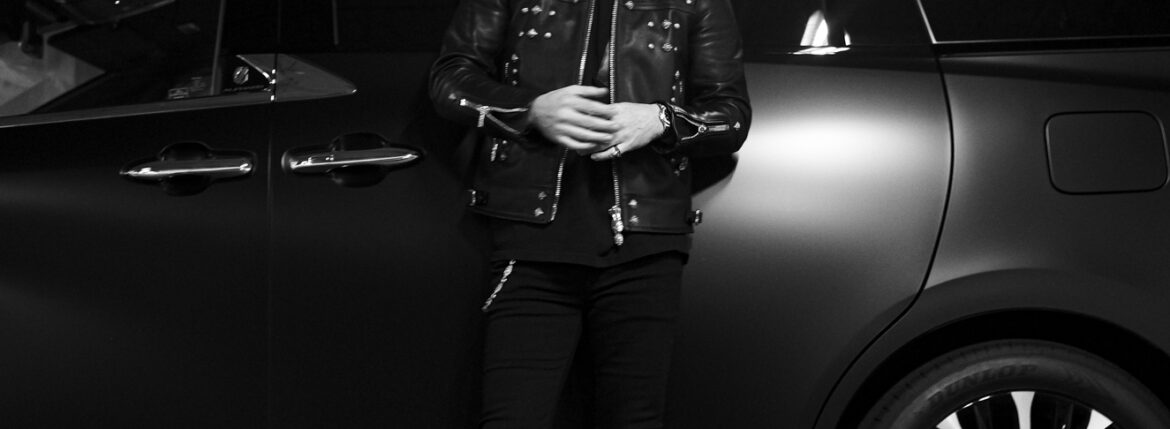 ※モデルは身長181センチ、体重75キロで「46サイズ」着用。 ※FIXER THUNDERCAT 925 STERLING SILVER BLACK ※TOM FORD GRAIN LEATHER ZIP BIKER