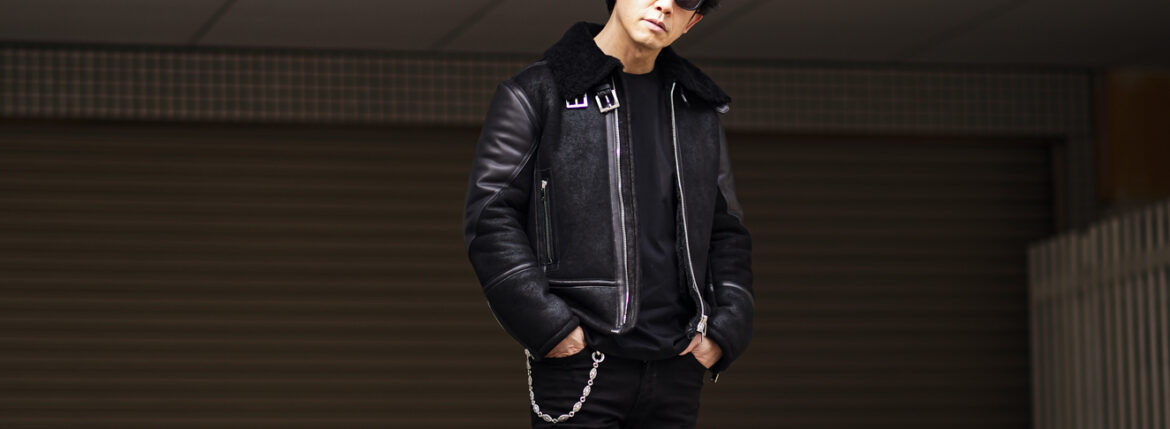 ※モデルは身長172センチ、体重57キロで「48サイズ」着用。 ※FIXER F12 FLIGHT JACKET Cashmere Suede × Cow Leather BLACK ※cuervo bopoha Chr